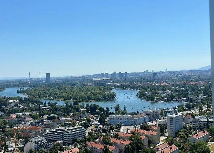 The 1-room High-End Apartment Close To Metro And Uno-City With E-Parking Vienna lies 3.7 miles from the 19th-century Habsburg Albertina Palace and approximately 5 minutes' stroll from Kagran subway station. Situated just a few steps from Cineplex Donauplex Imax Theater, this apartment offers a terrace where guests can relax and enjoy lakeside view.